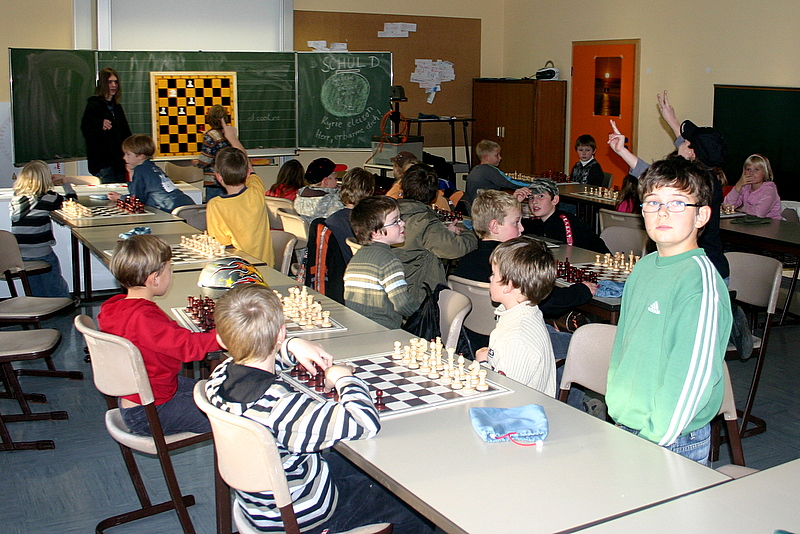 Im Schulschach geht es darum Kindern das Schach beizubringen. Inzwischen gibt es in Bayern über 300 Schulschach-Patente. Die Devise beim Grundschulschach ist “Zeit lassen“ und das Ausprobieren steht im Vordergrund beim Erlernen des Königlichen Spieles.
