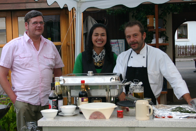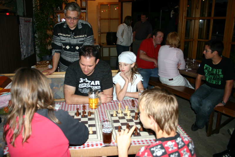 Zum diesjährigen Sommerfest kamen 45 Schachfreunde. Erstmals kochten Michel und Martin mit ihrer Küchenzeile. Zur Auswahl standen den Gästen Gerichte aus heimischer und asiatischer Küche. Auf Wunsch wurde auch ein zusammengestelltes Gericht individuell mit dem Wok zubereitet.