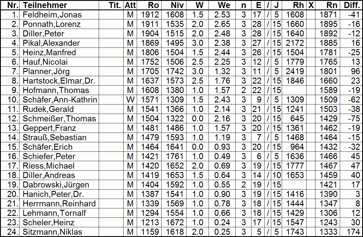Eine tolle Kreismeisterschaft hat ihre Sieger gefunden. Fünf der teilnehmenden Jugendspieler unter den besten Sieben. Lorenz konnte in der letzten Runde mit einer schönen Partie noch den 3. Platz erspielen.