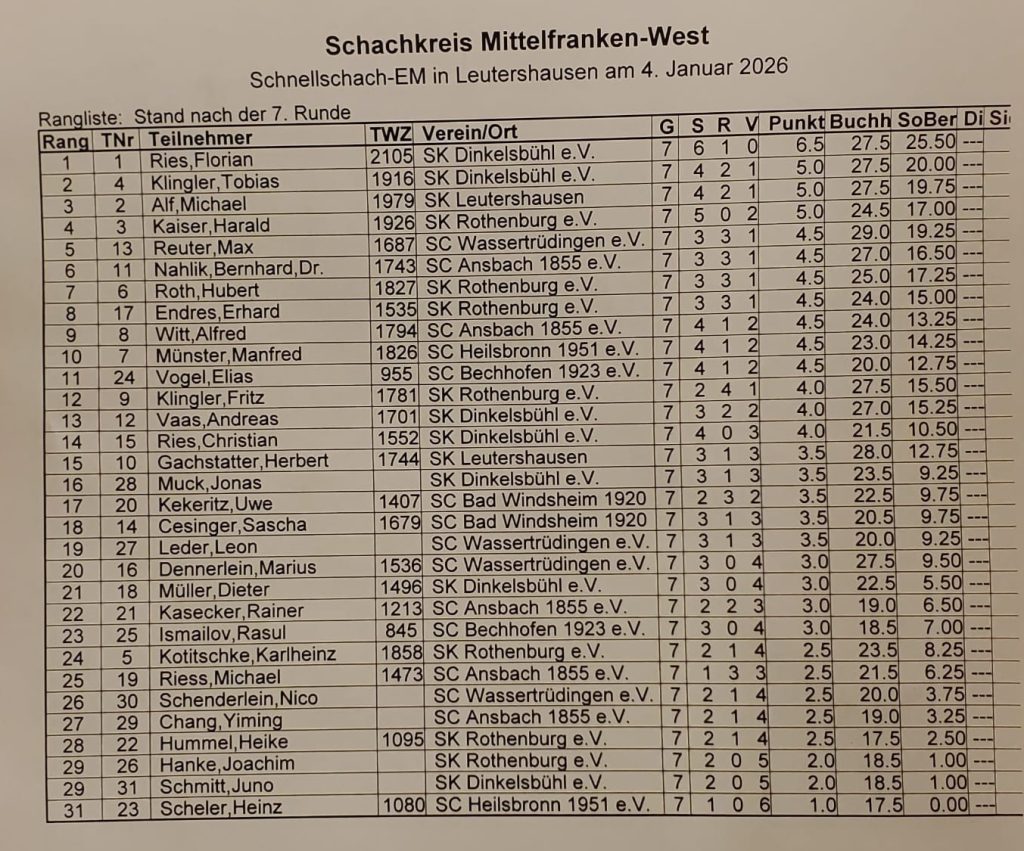 Zum Jahresauftakt waren unsere beiden Jugendlichen Elias und Rasul bei den Kreismeisterschaften im Schnellschach dabei und überzeugten mit schönen Partien. Vor allem Elias hat sich heute von seiner besten Seite gezeigt. Es waren alle sehr erstaunt, dass Elias 4,5 Punkte geholt hat. 🤭