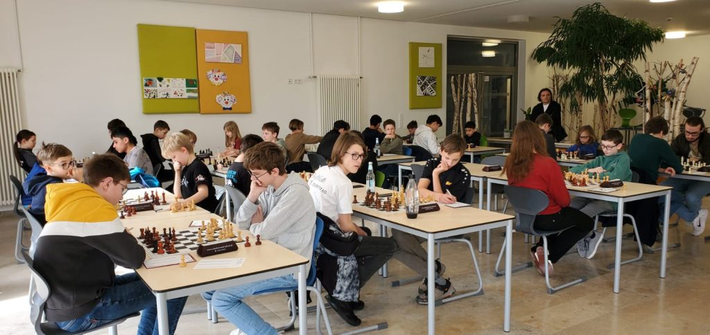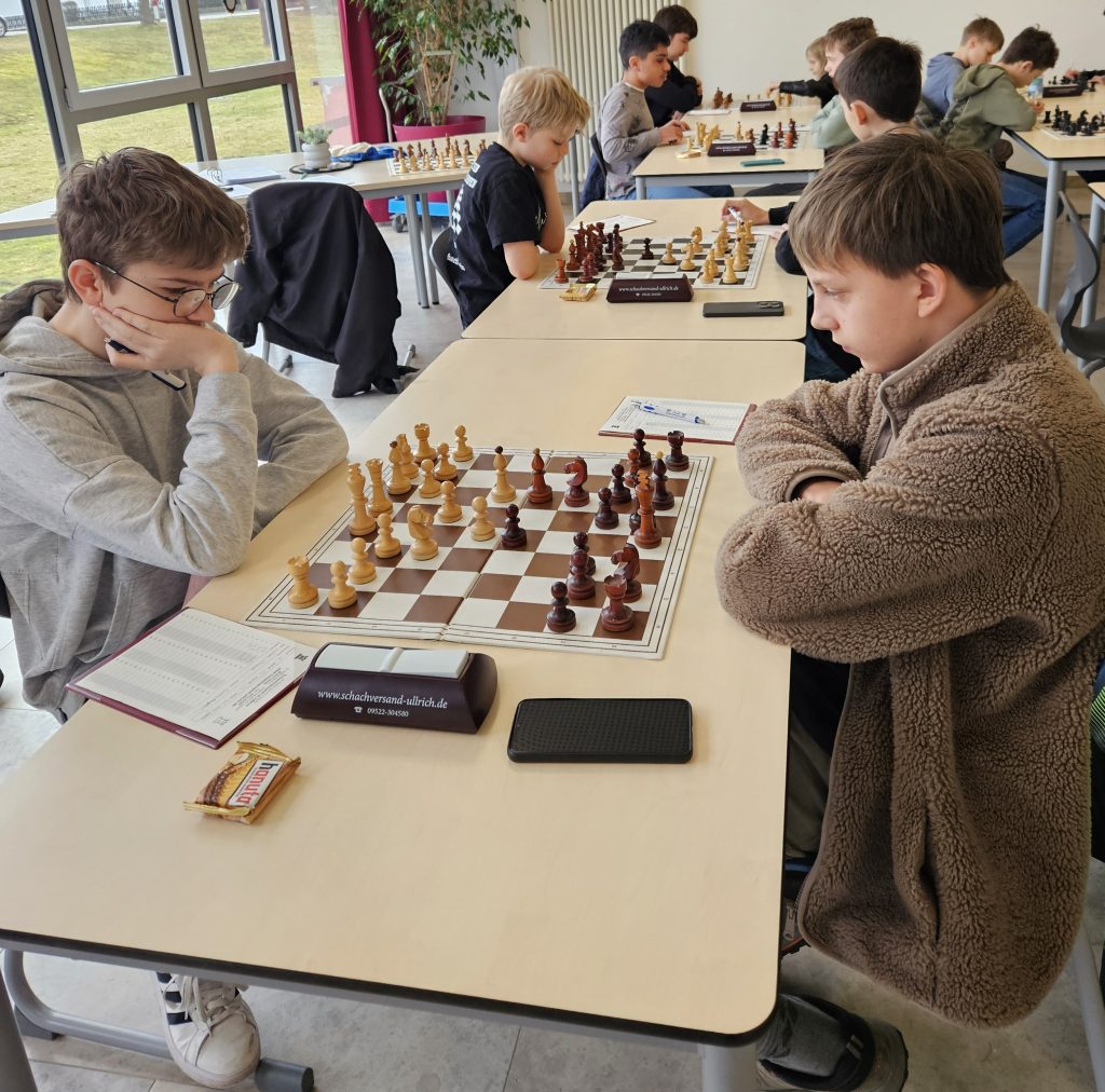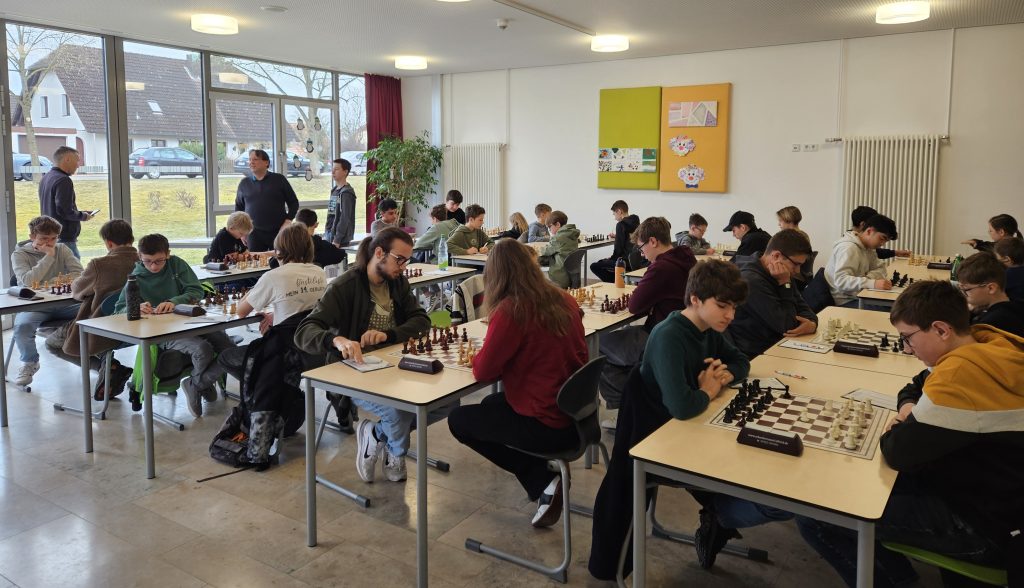 Unsere 2. Jugendmannschaft mit Lukas, Elias, Rasul und Emer kämpft um Punkte und wertvolle Erfahrungen. In der ersten Runde ging unser Team gegen Dinkelsbühl schnell mit 3:0 in Führung. Lukas veendete zum 4:0