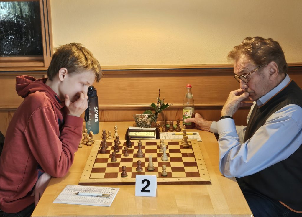 Wir sind mit 2 Jugendlichen Spielern bei den Kreismeisterschaften 2026 dabei. Benedikt konnte die beiden ersten Partien (in der 2. Runde gegen unseren früheren Spieler Josef Weeger, der nach 35 Jahren Pause wieder ans Brett ging) gewinnen und trifft in der 3. Runde auf den langjährigen Regionalliga Spieler Gerd Fischer. Rasul konnte mit einem Sieg in der 2. Runde weitere wichtige Erfahrungen sammeln.